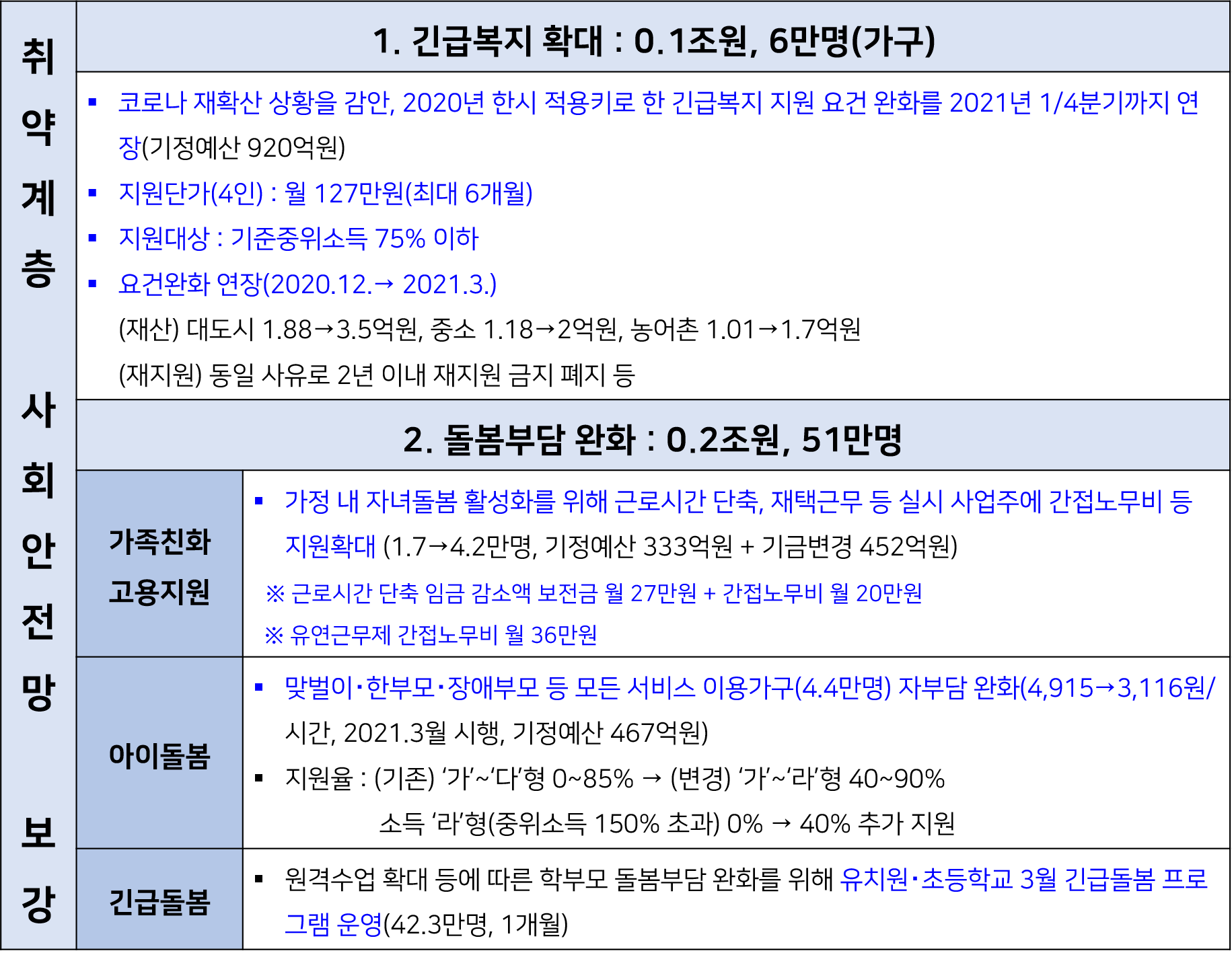 - 생계위기 가구에 긴급복지 지원 확대